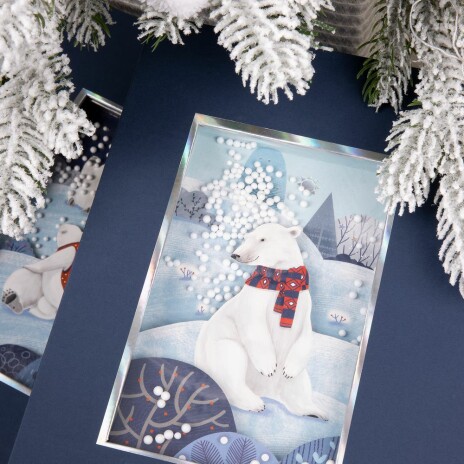 Элегантная коробка из переплетного картона The Blue Bear станет настоящим украшением зимних праздников. Ее главная изюминка — очаровательное окошко с 3D-иллюстрацией, которое словно приглашает в мир новогодних чудес.