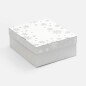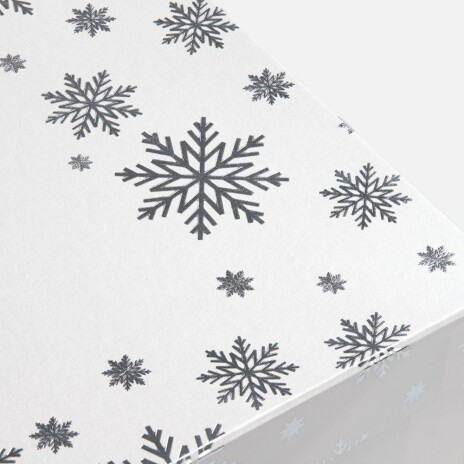 Коробка выполнена из переплетного картона толщиной 1,5 мм, кашированного бумагой TPG с тиснением серебристой фольгой.