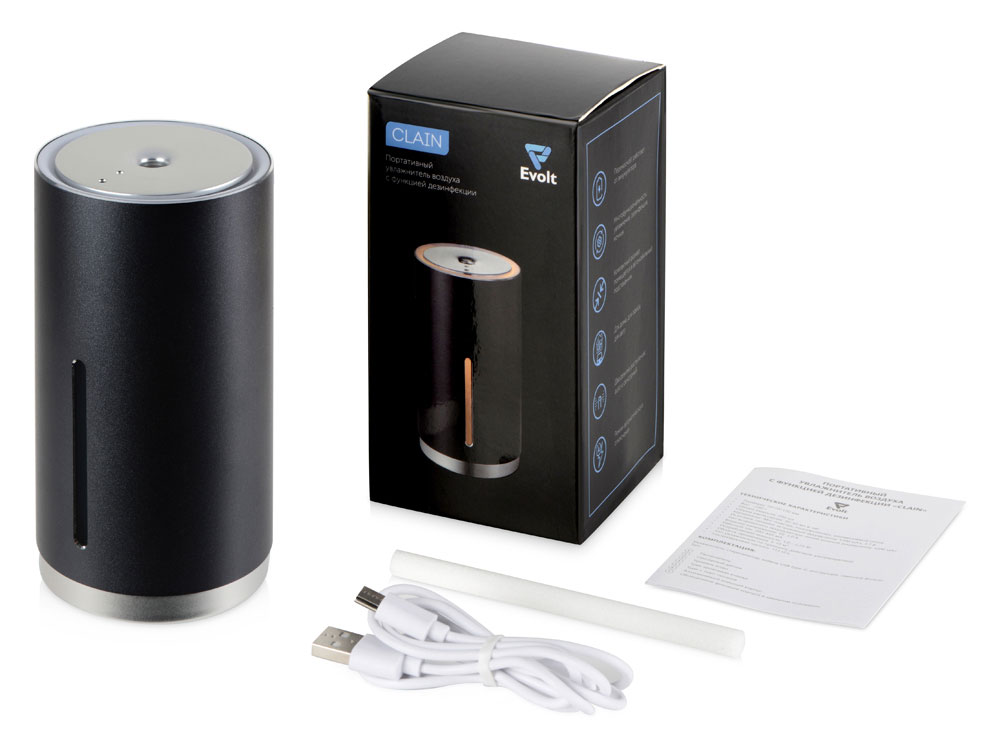 Увлажнитель Clain от Evolt работает от аккумулятора, благодаря чему вы можете использовать его в любой точке своей квартиры. Благодаря небольшому размеру Clain можно использовать не только дома и в офисе, но и в автомобиле: он такой маленький, что помещается даже в автомобильный подстаканник! Устройство можно использовать в качестве дезинфектора: для этого вместо воды добавьте в емкость спирт 75%. Модель имеет подсветку, благодаря строгому минималистичному дизайну может использоваться в качестве делового подарка мужчине или женщине, а еще Clain будет хорошо смотреться с нанесенным на корпус лого. - два режима распыления: auto и сенсорный - режим автоматического отключения - портативный - вариант подарка для автовладельца: совместим с большинством моделей автомобильных подстаканников - не разрешается использовать с ароматическими маслами
