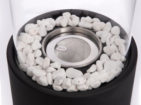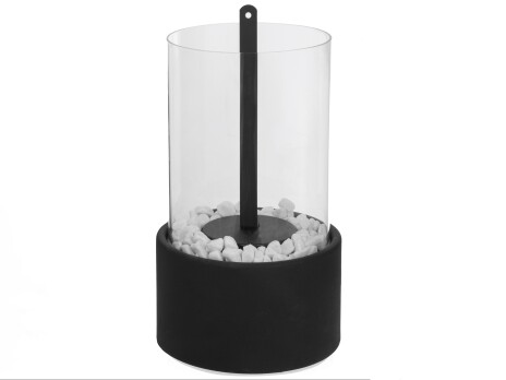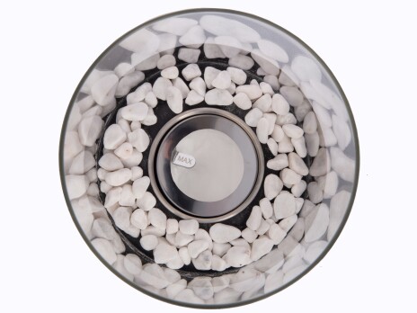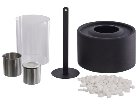 - Комплектность - металлическая база, стеклянная колба, емкость для топлива, заглушка для тушения пламени, керамическая вата, декоративные камни