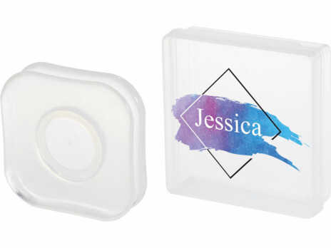 Моющийся, многоразовый портативный держатель для мобильного телефона с клеящимся слоем, который надежно фиксирует устройство. Держатель можно крепить к любой плоской поверхности, что позволит надежно и крепко зафиксировать телефон. Когда поверхность начинает отклеиваться, можно промыть клеящую сторону и приклеить заново. Поставляется с защитным футляром для удобного хранения. Пластик TPU.