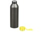 Бутылка для воды Joli выполнена из алюминия, что обеспечивает ей, при довольно солидном объеме (650 мл), сравнительно малый вес. Матовый корпус угольно-черного цвета создает интересный контраст с прозрачной крышкой яркого сочного оттенка, дополненной силиконовой петелькой в тон. Крышка плотно прилегает при закручивании, что обеспечивает Joli герметичность, а текстура покрытия корпуса не дает руке скользить при захвате. - оптимальный объем для ежедневного пользования - несколько видов нанесения на выбор, возможность брендирования корпуса и крышки - силиконовый ремешок для подвешивания - матовое текстурное покрытие - герметичная крышка