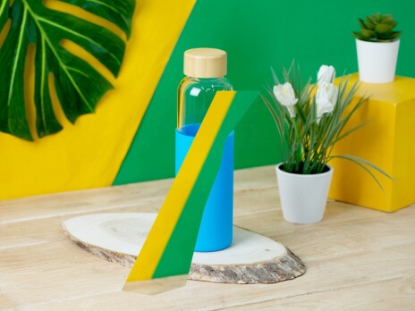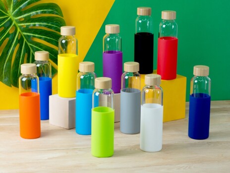 Стильная бутылка для воды сразу привлечет внимание к себе, где бы Вы ее ни достали, так как представляет собой идеальную композицию из трех экологичных материалов. Бутылка выполнена из качественного боросиликатного стекла, поэтому абсолютно не влияет на вкус и запах напитков. Силиконовый чехол поможет защитить бутылку от повреждений и легких падений, также чехол выполняет анти-скользящую функцию. Крышка выполнена из натурального бамбука. Не замораживайте и не используйте бутылку в микроволновке. Бутылка легко моется. Объем 550мл.