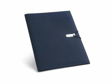 Папка A4 из 600D с застежкой на резинке. Папка имеет блокнот из 20 листов в линейку, 3 внутренних кармана и держатель для шариковой ручки (ручка не входит в комплект). 240 x 325 x 15 мм. Вид нанесения, рекомендуемый поставщиком: гравировка, трансфер.
