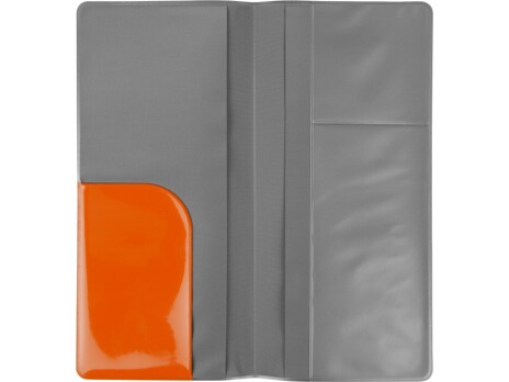 Дорожное портмоне – полезный аксессуар для всех, кому приходится часто путешествовать. • Аксессуар выполнен из морозостойкого и прочного ПВХ; • внутри отделан контрастным серым материалом; • многофункционален: предусмотрено 5 отделений для самых разных документов, таких как паспорт, билеты, карточки, водительские права; • гладкая поверхность предназначена для нанесения логотипа компании.