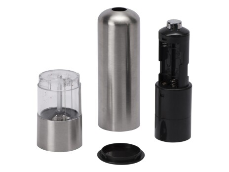 Электрическая мельница «Fresh mix» от Eat&Bite подходит для измельчения крупной соли, перца и других специй. Для этого достаточно просто нажать на кнопку на корпусе устройства. Преимуществом добавления в блюда только что смолотых специй является сохранение их вкуса и аромата, которые не потеряются в процессе длительного хранения в уже измельчённом виде. «Fresh mix» позволяет удобно регулировать степень помола от грубого до мелкого с помощью винтового механизма под ёмкостью в нижней части мельницы. Благодаря прозрачной вставке вы всегда будете видеть содержимое и сколько его осталось. Наличие LED подсветки позволяет точно контролировать количество добавляемых в блюдо специй. «Fresh mix» работает от 4-х батареек типа АА (не входят в комплект). Жернова изготовлены из керамики и устойчивы к коррозии. • Удобная кнопка включения • Регулирование грубости помола • LED подсветка • Керамические жернова, устойчивые к коррозии • Работает от 4-х батареек типа АА
