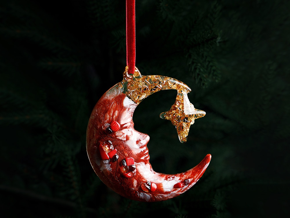 Волшебная ночь — это украшение, которое переносит в мир сказочных ночных историй и придает дому атмосферу уюта и сказочности. Игрушка бережно упакована в картонную коробку с внутренним вкладышем, который надежно фиксирует её внутри. Для вашего удобства в комплекте есть ленточка, чтобы игрушку можно было сразу повесить на ёлку.