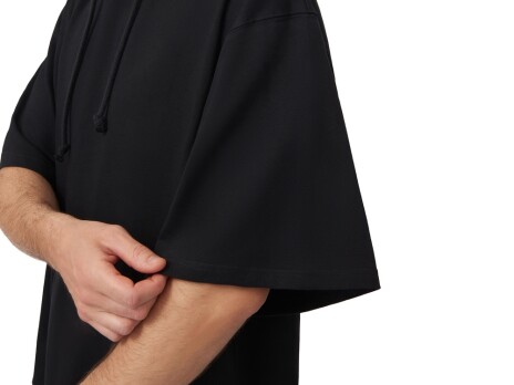 Худи с коротким рукавом выполнено из хлопкового френч терри с петельками на изнаночной стороне. Подкладка капюшона выполнена из основного полотна для объемной посадки. Модель комфортной и актуальной посадки оверсайз отлично подходит для обычной жизни и в качестве промо мерча. - оверсайз посадка - низ обработан рибом 2х2 и дополнительно отстрочен для укрепления - мягкое и качественное полотно френч терри - увеличенная зона для нанесения из-за отсутствия кармана