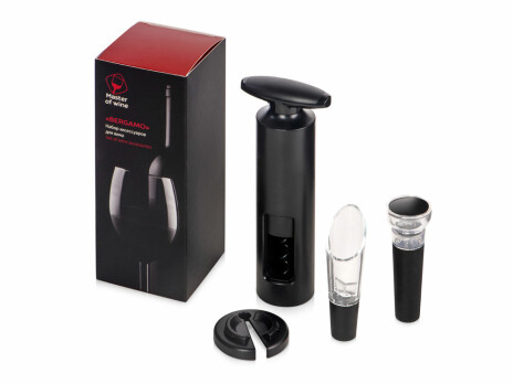 Набор «Bergamo» - это идеальный вариант на роль бюджетного подарка деловому партнеру, который можно приложить к вину. Подаренный напиток закончится, а брендированный набор останется, напоминая о дарителе. Острая часть штопора спрятана от пользователя в корпусе, что не только защищает пальцы от повреждений, но и обеспечивает спирали долгий срок службы. Нож для фольги может играть роль подставки под штопор — слегка сожмите его края и поместите в нижний паз до щелчка. Для откачивания воздуха из бутылки несколько раз прокачайте пробку вверх-вниз. Аэратор вставьте в горлышко бутылки и пролейте через него вино в бокал - вуаля, вино мгновенно насытилось кислородом, да еще и без одной пролитой на скатерть капли! - оптимальное соотношение цены и качества - в наборе — принадлежности для всех этапов употребления вина - нож для срезания фольги = подставка под штопор