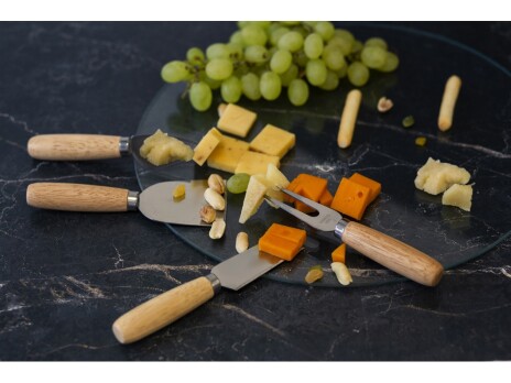 - Комплектность - стеклянная доска, нож для твердого сыра, нож для мягкого сыра, нож для пармезана, вилка для сыра, ножки-стопперы (3шт)