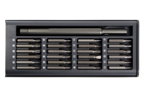 Everybit Lite — это набор отверток 24-в-1, изготовленный из прочной стали CRV и включающий в себя необходимые детали для ремонта смартфонов, планшетов, ПК и игровых консолей. В комплекте с анодированным, противоскользящим и вращающимся колпачком входят долота из закаленной стали с прорезями, крестообразные, шестигранные, Torx, пятилопастные и трехлопастные. Подходит для ремонтных работ с iPhone, iPad, MacBook Air и MacBook Pro, а также Nintendo, PlayStation и XBox. Кейс выполнен из пластика.