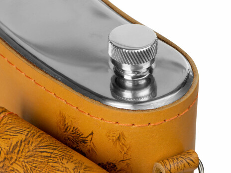 Набор «Подарочный»: фляга 511/2 (рыжая кожа), 2л+2 стаканчика+2 вилки