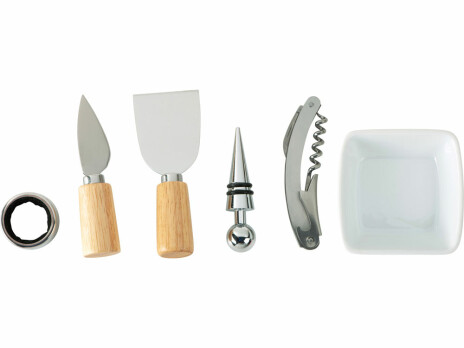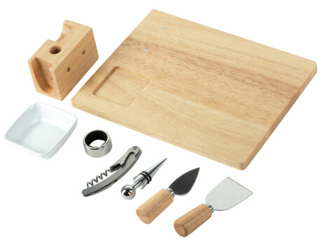 - Комплектность - разделочная доска / доска для подачи закусок, соусница / емкость для оливок , штопор, пробка для вина, кольцо для винной буиылки, два сырных ножа