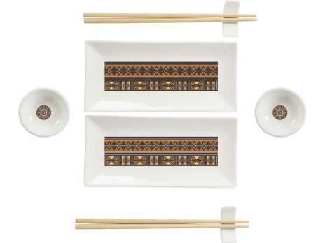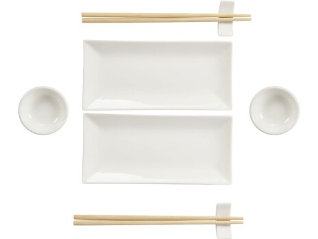 - Комплектность - блюдце для сервировки- 2шт., соусник- 2 шт., палочки для суши- 2 комплекта, подставка для палочек- 2 шт.