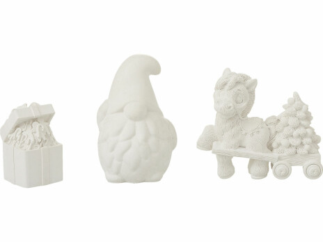 - Размер товара (см) - 19 х 12,5 х 10 см, лошадка 9,5 х 8,5 х 2,5 см, гном 6,2 х 6 х 9,5 см, подарок 4,2 х 3,7 х 6,1 см, краски 18 х 3,3 х 0,9 см, кисточка 16 см