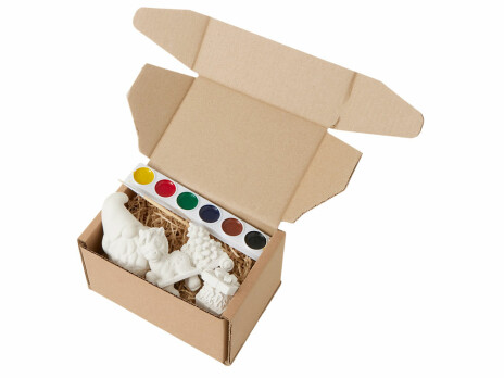 - Комплектность - 3 гипсовых фигурки, акварельные краски, 1 кисточка