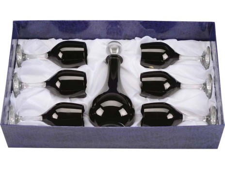 Подарочный набор посуды для вина включает в себя 6 бокалов и графин. Набор выполнен из тонкого прозрачного и черного стекла. Ручная работа. Плавность форм и изумительный внешний вид не оставит равнодушным даже самых требовательных людей.