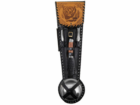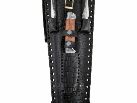 Набор для пикника в кожаном чехле ручной работы. В комплект входит: Тарелка 700 мл d16 х 6,4 см - 6шт Стопка d5,3 х 5,7 см - 6шт Нож 25,7 х 3,6 х 2 см - 1шт Ложка 19,3 х 4,5 х 2,7 см - 6шт Вилка 19,3 х 2,5 х 1,7 см - 6шт Топор 39,5 х 14,5 х 3,2 см - 1шт Ножки для мангала 50,5 х 31 х 1 см - 2шт Шампур d2,6 х 66 см - 6шт