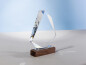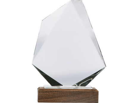 Награда выполнена из прозрачного стекла, имеет интересную асимметричную форму и расположена на деревянном постаменте. Вставка из синего стекла между основной частью и основанием позволяет награде бликовать синим цветом в зависимости от угла падения света. • Интересная форма • Синяя стеклянная вставка между основной частью и основанием • Деревянная подставка