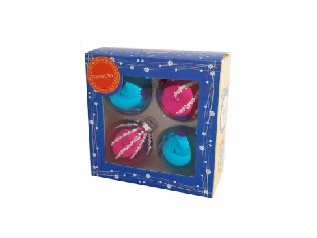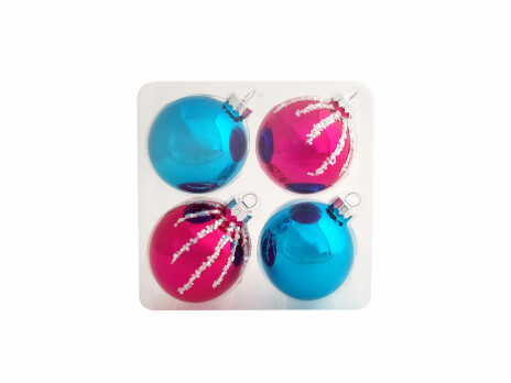 Новогоднее подвесное украшение Бирюзово-розовый шар из стекла, набор из 4 штук / 6см