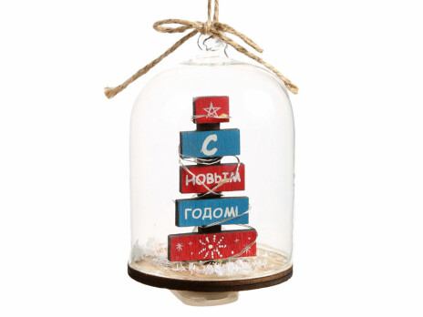 Новогоднее украшение С НГ в колбе из древесины тополя и стекла, со светодиодной подсветкой, в комплекте с 2-мя батарейками CR2032, мощностью 0,06 Вт, напряжением 3В / 11x7см