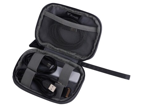 Органайзер для проводов – практичное решение для организации хранения различных шнуров к электронным аксессуарам. Органайзер изготовлен из плотного материала, устойчивого к разрыву, благодаря чему надежно защищает содержимое от механических повреждений. • Сетчатый карман и отсеки на резинке позволяют аккуратно распределить провода так, чтобы они не спутывались и были легкодоступны в любой момент • Компактные размеры и наличие ремешка делают органайзер удобным для ношения с собой – он легко помещается в кармане или сумке