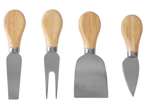 - Комплектность - вилка для сыра 12,6 см, нож листовидный 11,6 см, нож-лопатка 12,2 см, нож-топорик 12,7 см, подставка d20 х 3,5 см