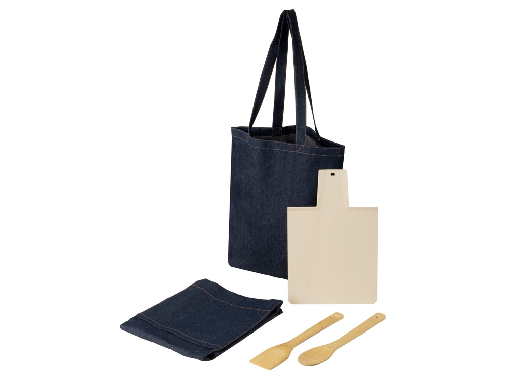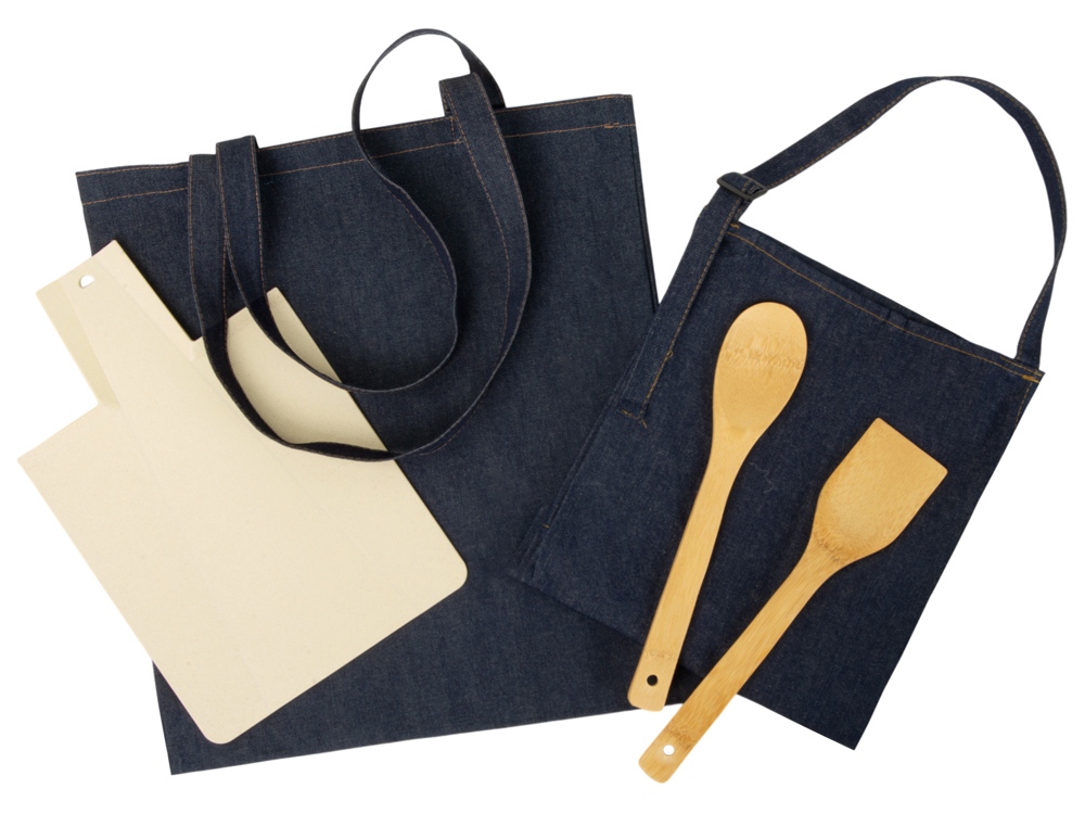 - Материал: сумка и фартук- хлопок, доска- 50% бамбуковое волокно, 50% пластик, ложка и лопатка- бамбук