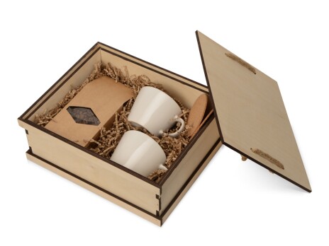 - Цвет: чашки- белый, костеры- светло-коричневый, коробка- натуральный