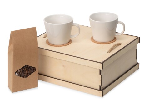 Подарочный набор с кофе, чашками в деревянной коробке "Кофебрейк"