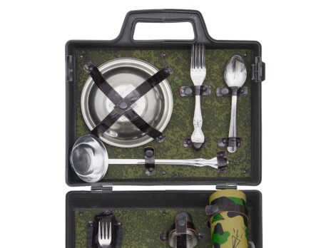 Подарочный набор для пикника. Этот комплект содержит все необходимое для комфортного и практичного времяпрепровождения на свежем воздухе. Вас ждут: - 6 мисок из нержавеющей стали (500 мл) — легкие и долговечные, идеально подходят для порционных блюд и закусок. - 6 вилок и 6 ложек из нержавеющей стали — надежные и стильные столовые приборы, которые сделают прием пищи удобным и приятным. - 6 стопок из нержавеющей стали — для дружеских тостов и веселых встреч на природе. - Половник — необходимый аксессуар для сервировки супов и горячих блюд. - Термос (500 мл) — для хранения ваших любимых напитков и поддержания жажды во время активного отдыха. - Складной туристический нож — многофункциональный инструмент для приготовления пищи и решения повседневных задач. - Зажигалка — для быстрого разжигания костра и создания уюта. Все элементы набора выполнены из качественной нержавеющей стали, что обеспечивает долговечность и легкость в уходе. Упакованы в пластиковый кейс и надежно закреплены ремешками из натуральной кожи, что обеспечивает удобство транспортировки и сохранность содержимого.