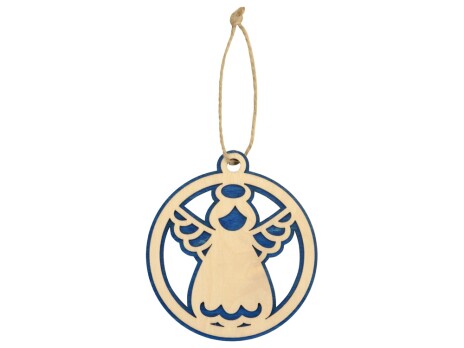 Елочная игрушка в виде главного символа праздника. новогоднего ангела – атмосферный и праздничный сувенир. Подвеска изготовлена из березовой фанеры и украшена тонировкой синего цвета, которая подчеркивает объемность игрушки и оттеняет текстуру неокрашенной части подвески. На одеждах ангела можно разместить ваши благопожелания или логотип.