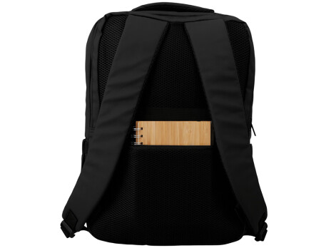Непромокаемый бизнес рюкзак с двумя вместительными отделениями и карманом на молнии спереди. В одном отделении расположены карман для ноутбука и планшета, в другом органайзер и много пространства для одежды и других вещей на случай деловой поездки. На сетчатой спинке расположен потайной кармана на молнии для документов и личных вещей и ремень для крепления на ручку чемодана. Сверху удобная мягкая ручка для переноски. Лямки регулируются по длине.