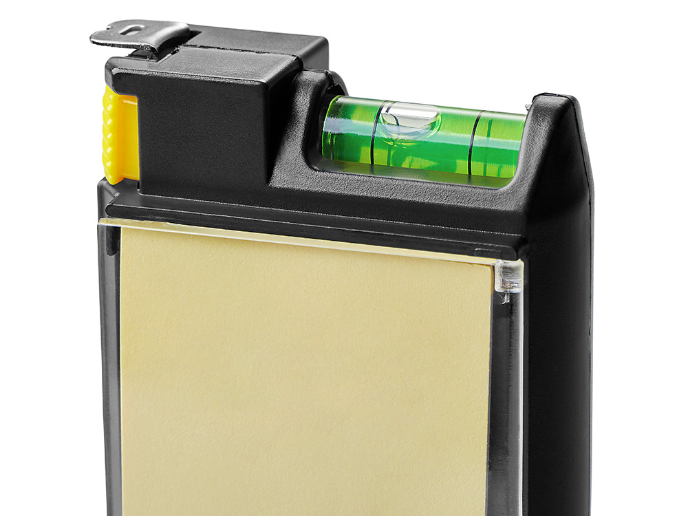 - Комплектность - рулетка с уровнем, блокнот, ручка шариковая