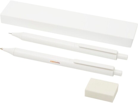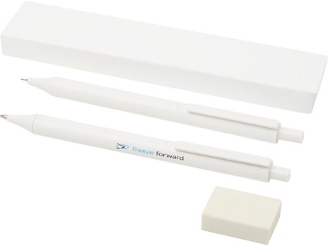 - Комплектность - шариковая ручка, механический карандаш, ластик