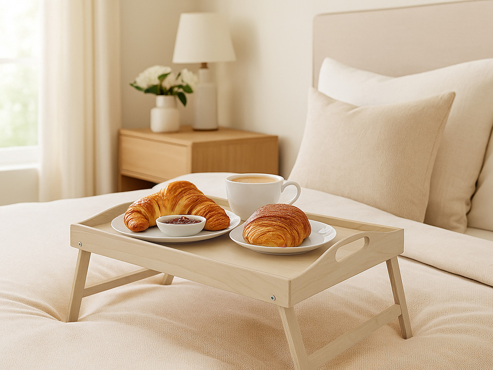 Уют начинается с деталей — и столик-поднос со складными ножками "TrayTale" точно одна из них. Идеальный аксессуар для завтраков в постель, уютных вечеров на диване или домашних посиделок с книгой и чашкой чая. Продуманный до мелочей: - Складные ножки превращают поднос в устойчивый мини-столик, который легко хранить и удобно переносить; - Удобные ручки по бокам — переносите, не боясь пролить или уронить; - Лёгкий вес и компактный формат делают его максимально практичным в быту; - Размер 500×300×230 мм (в разложенном состоянии) — оптимален для одного-двух человек. Идеально подойдёт как для дома, так и в подарок — вещь, которая точно будет использоваться с удовольствием.
