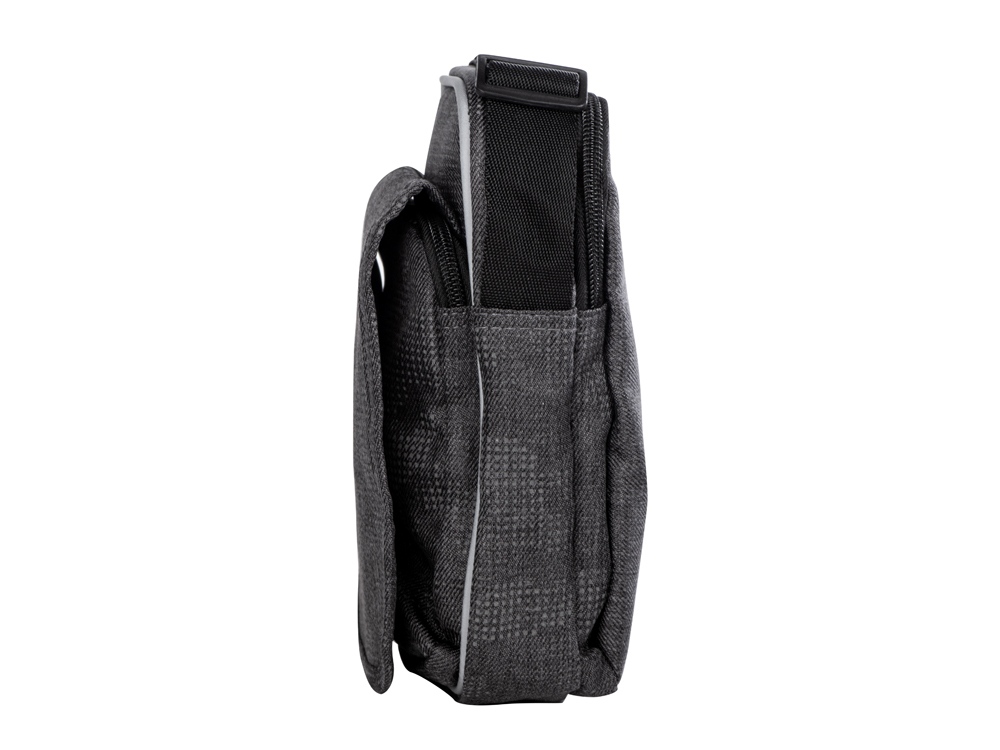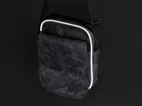Материал сумки имеет светоотражающее камуфляжное нанесение. Спереди по краю сумки расположена светоотражающая полоса. Все это обеспечивает дополнительную безопасность в темное время суток. Удобная конструкция для всего самого необходимого: 2 отделения и передний карман на молнии с клапаном на липучке. Длинный ремень на плечо регулируется по длине и подойдет для людей любого роста.