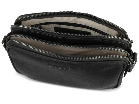Сумка кросс-боди женская BUGATTI Bella, чёрная, воловья кожа/полиэстер, 22х6х15,5 см