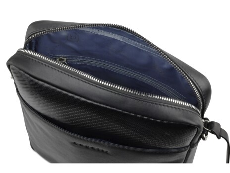 Сумка наплечная мужская BUGATTI Comet, чёрная, воловья кожа/полиэстер, 23,5х5х26 см