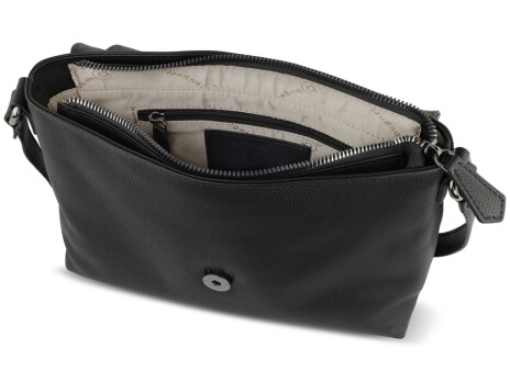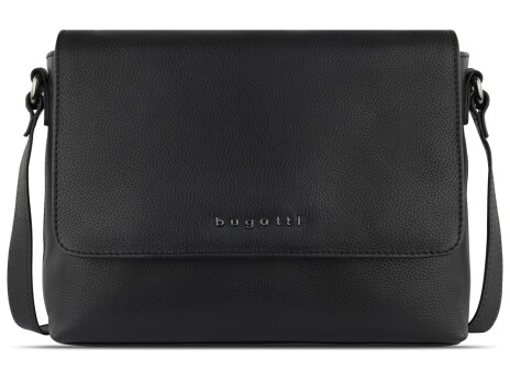 Сумка наплечная женская BUGATTI Bella, чёрная, воловья кожа/полиэстер, 25х8х20 см