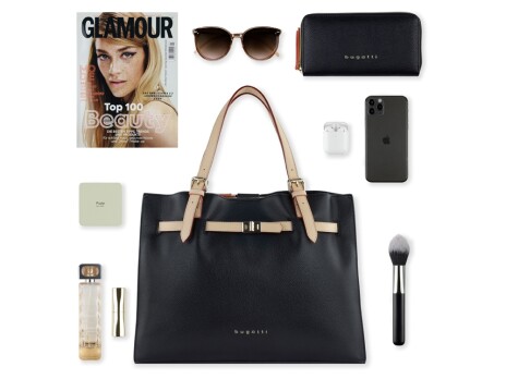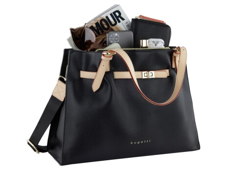 Сумка наплечная женская BUGATTI Ella, черная, полиуретан, 37,5х13,5х28 см
