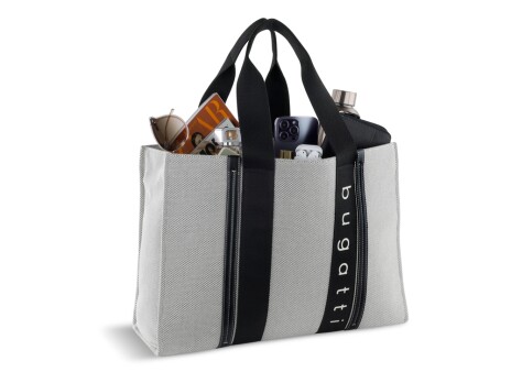 Сумка-тоут женская BUGATTI Ambra, серо-черный цвет, хлопок/полиэстер, 45х14х32 см