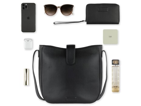 Сумка женская BUGATTI Elsa, чёрная, воловья кожа/полиэстер, 29х8х27 см