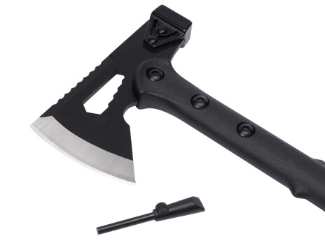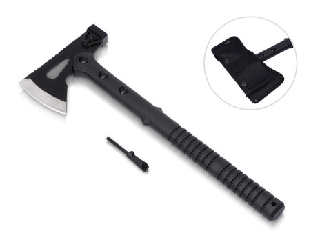 Топор 4-в-1 «Lumber» бренда roq выполнен из нержавеющей стали 420 марки. Товар поставляется в нейлоновом чехле. В чехле есть специальный кармашек с огнивом. Чтобы высечь искры для разжигания костра, возьмите огниво за рукоять в одну руку и проведите лезвием по стержню огнива под углом в 90 градусов в направлении от себя. В целях безопасности не высекайте искры в помещении или около легко воспламеняемых материалов. Поставляется с чехлом в картонной коробке. - Топор - Молоток - Шестигранник на 5 размеров (8/10/12/14/16 мм) - Огниво