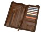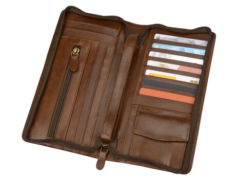 Стильное трэвел-портмоне из натуральной кожи позволить организоват хранение визитных и пластиковых карт. В портмоне предусмотрены карманы под купюры. Портмоне прекрасно подойдет для подарка женщинам и мужчинам.