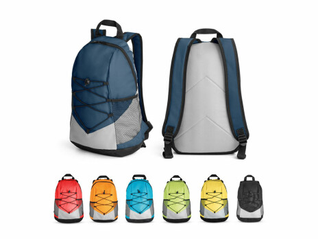 Рюкзак из 600D с боковыми карманами из сетки и одним внутренним. Задняя часть и плечевые ручки с набивкой. 250 x 420 x 180 мм