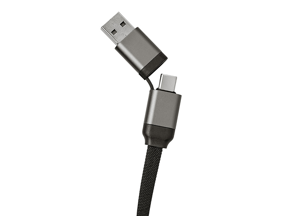 Универсальный зарядный кабель с подставкой «Ironwood N2» — ваш надёжный помощник в любой ситуации. Он объединяет в себе функции мощного зарядного кабеля и удобной подставки для смартфона — идеально для офиса, кафе или дома. Благодаря входному разъёму 2в1 (USB-C и USB-A) и выходному 2в1 (USB-C и Lightning), вы заряжаете любые современные устройства. Поддержка быстрой зарядки до 45 Вт обеспечивает молниеносное восполнение энергии даже у мощных гаджетов. Корпус выполнен из прочного переработанного алюминия по стандарту RCS — стильный, экологичный и долговечный. Компактный дизайн позволяет легко поместить в сумке, рюкзаке, кармане или закрепить на связке ключей. Поставляется в индивидуальном конверте из переработанного картона. - Универсальность на каждый день — 2 входа (USB-C / USB-A) + 2 выхода (USB-C / Lightning) = один кабель для всех устройств. - Быстрая зарядка 45 Вт — заряжайте смартфоны, планшеты и ноутбуки на максимальной скорости. - Встроенная подставка — удобно ставьте телефон вертикально на столе, чтобы смотреть видео или принимать звонки. - Экологичный корпус из переработанного алюминия (RCS) — стиль, прочность и ответственность перед природой.
