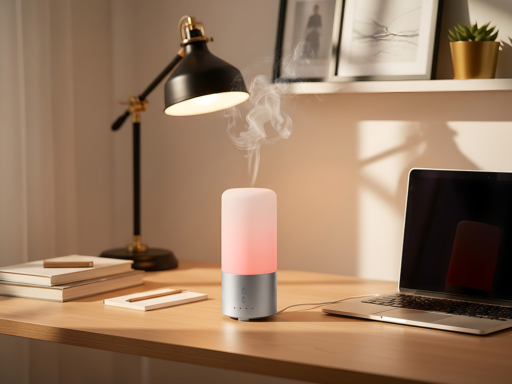 Увлажнитель воздуха с подсветкой "Breathe", белый/серебристый