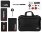 - Комплектность - сумка для ноутбука, повербанк 5000 mAh, блокнот А6, ручка шариковая, картхолдер, чехол для пропуска, ретрактор, сет стикеров