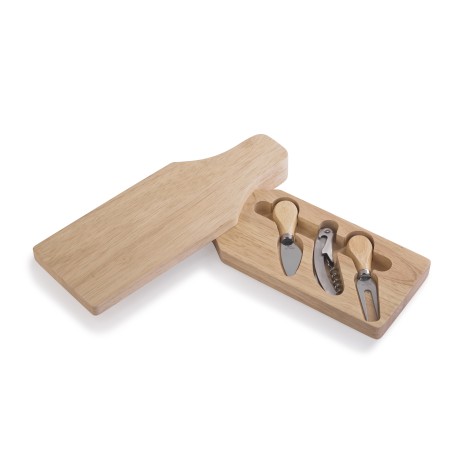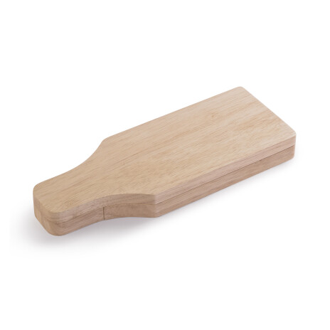 Доска-футляр и рукоятки выполнены из каучукового дерева, имеют характерный для дерева рисунок. Данная текстура обладает высокой прочностью и устойчива к влаге. Лезвия и нож сомелье из пищевой нержавеющей стали.